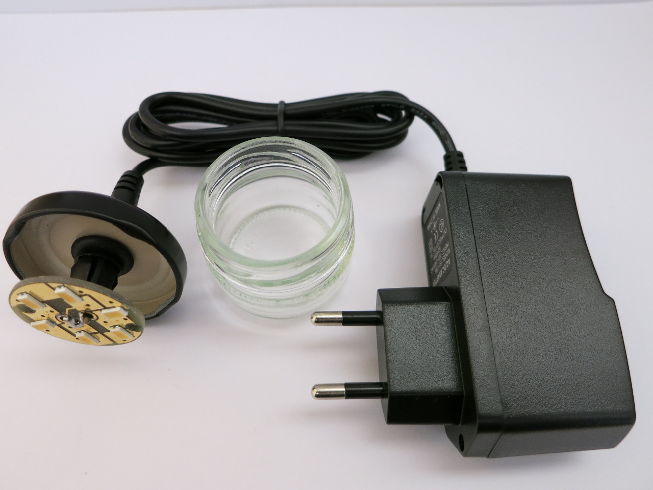3. Enlever le couvercle du pot en verre; retirer le dispositif à leds délicatement en le faisant tourner, comme pour dévisser.